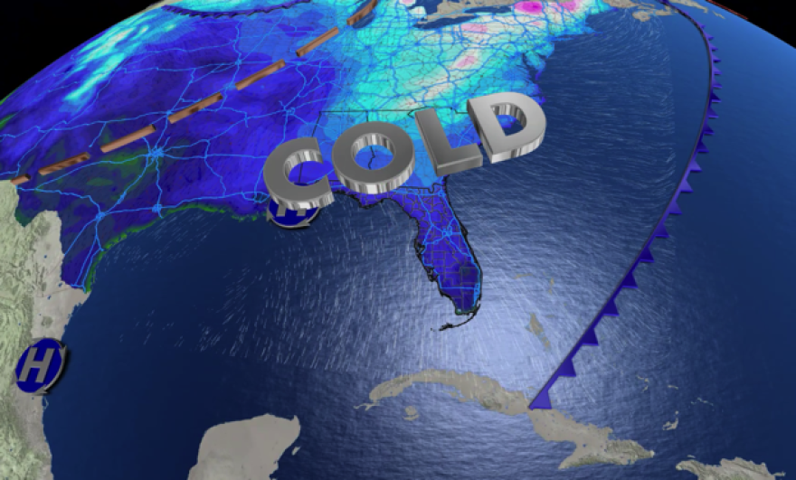 Arctic air is slowly making its way south and will arrive in Florida just in time to finish off the week. The cold front that is exiting the Great Lakes area will bring freezing temperatures across the Deep South. We expect not only frigid temperatures that could harm sensitive vegetation but also hazardous conditions for vulnerable populations, including children and the elderly.