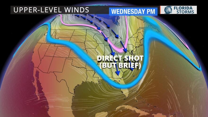 The core of the cold air will arrive Wednesday and Thursday, when temperatures are expected to be nearly 20 degrees cooler than they were over the weekend. Morning lows are expected to drop into the 40s across the northern half of the state, and dip to the 50s in South Florida by Thursday morning. Afternoon highs will run below normal as well, possibly not even hitting 70 in northern areas, and falling short of 80 degrees further south.