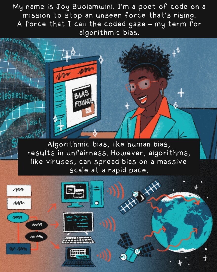 Joy Buolamwini is a computer scientist with a PhD in philosophy from MIT's Media Lab. She uses art and research to illuminate the social implications of artificial intelligence. She founded the Algorithmic Justice League to create a world with more equitable and accountable technology.