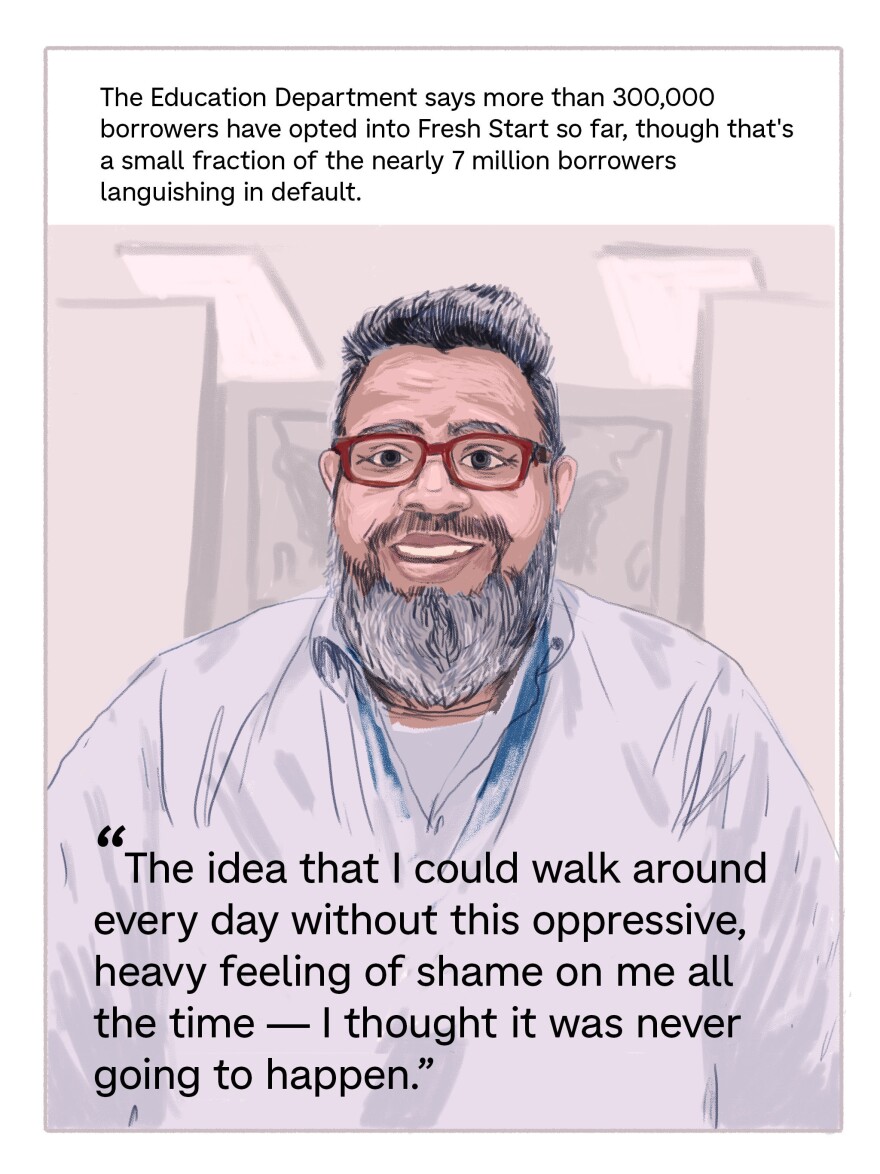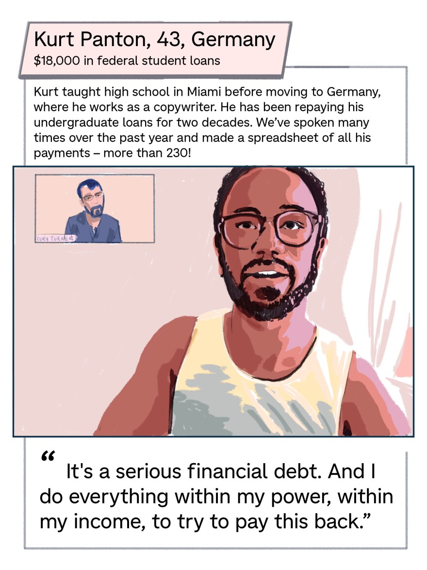 Now, all those divergent stories, millions of threads in a national patchwork, converge with this unprecedented return to repayment: Sofie must make her first payment ever, while Kurt tends a spreadsheet that says he's been in repayment for nearly 20 years. Carlos is hoping he can get into a new repayment plan so the loans he took out to help his children don't haunt him through retirement. Juan Carlos is fighting to emerge from the shadow of default. Phoema — suddenly, shockingly — has no loans to repay.