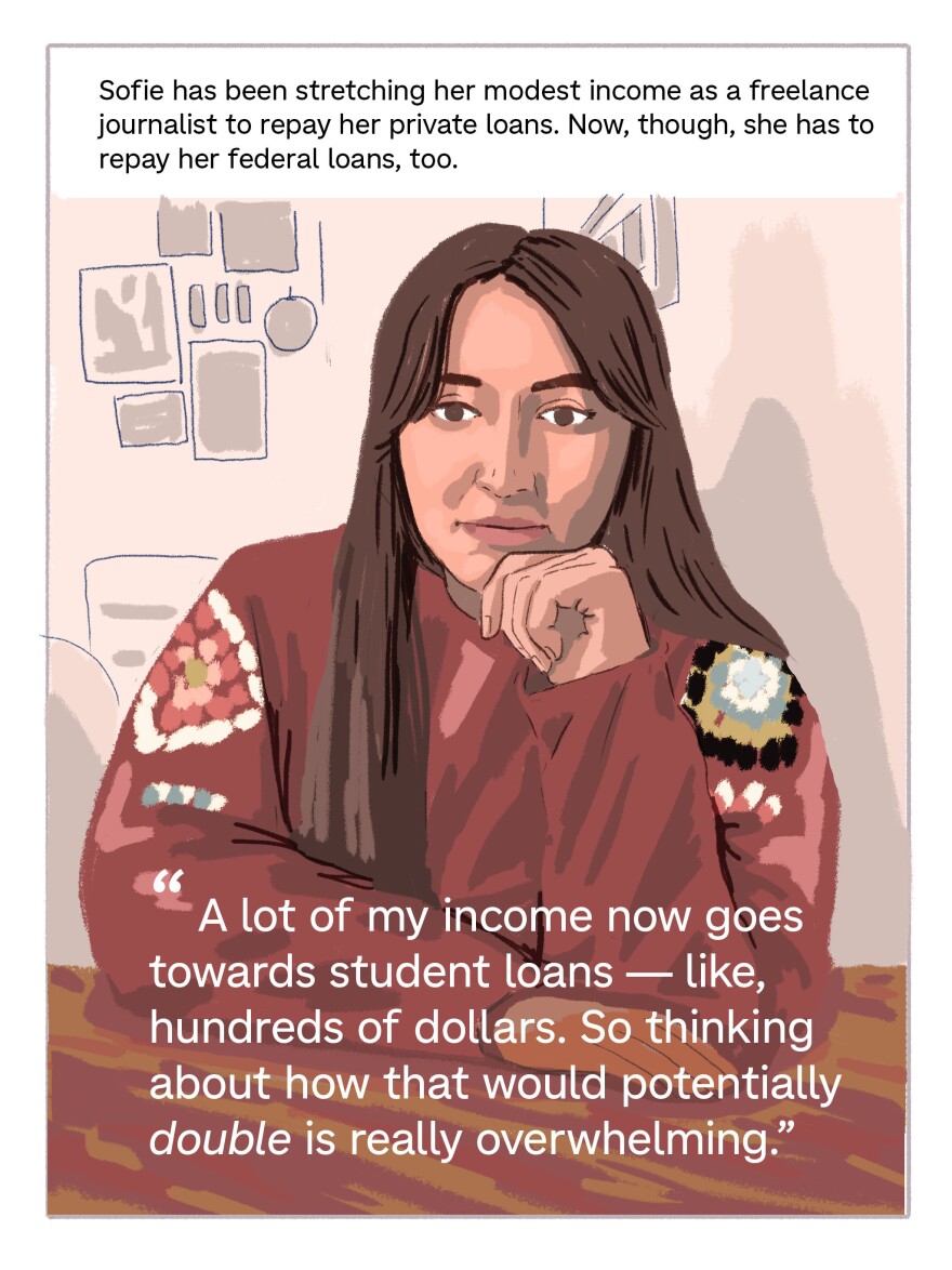 This is the return to repayment, in the voices of a handful of borrowers we met this year, reported by Cory Turner and illustrated by LA Johnson.
