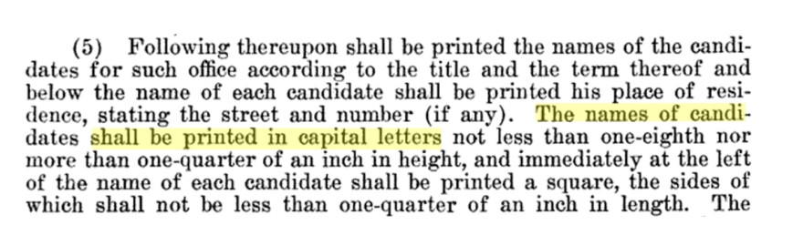 For example, numerous jurisdictions require that candidate names and titles be written in capital letters. This goes against huge amounts of evidence that lowercase letters are easier to read. Other requirements like setting a specific font size, making sections bold or center-aligning headers make it next to impossible to follow all the design best practices.