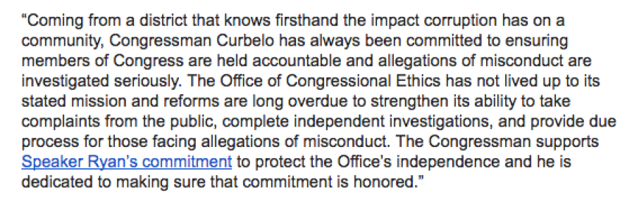 Republican lawmakers had announced on Monday night that they had voted privately to put Congress in control of investigating its own members, stripping the independence of the Office of Congressional Ethics. Two of the three South Florida representatives, U.S. Reps. Carlos Curbelo and Ileana Ros-Lehtinen, voted in favor of the measure.