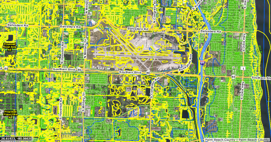 As the image shows, there are areas in western Palm Beach County that are due to be reclassified as flood zones. That could force property owners, if they have a mortgage, to buy flood insurance.