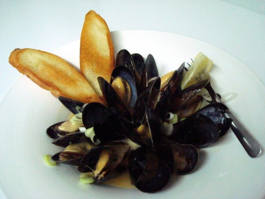 Put the Simple Court Bouillon or water in a skillet and bring to a boil. Add the mussels, cover and cook until opened, 2-4 minutes. Discard any that do not open. Drain. Allow to cool.