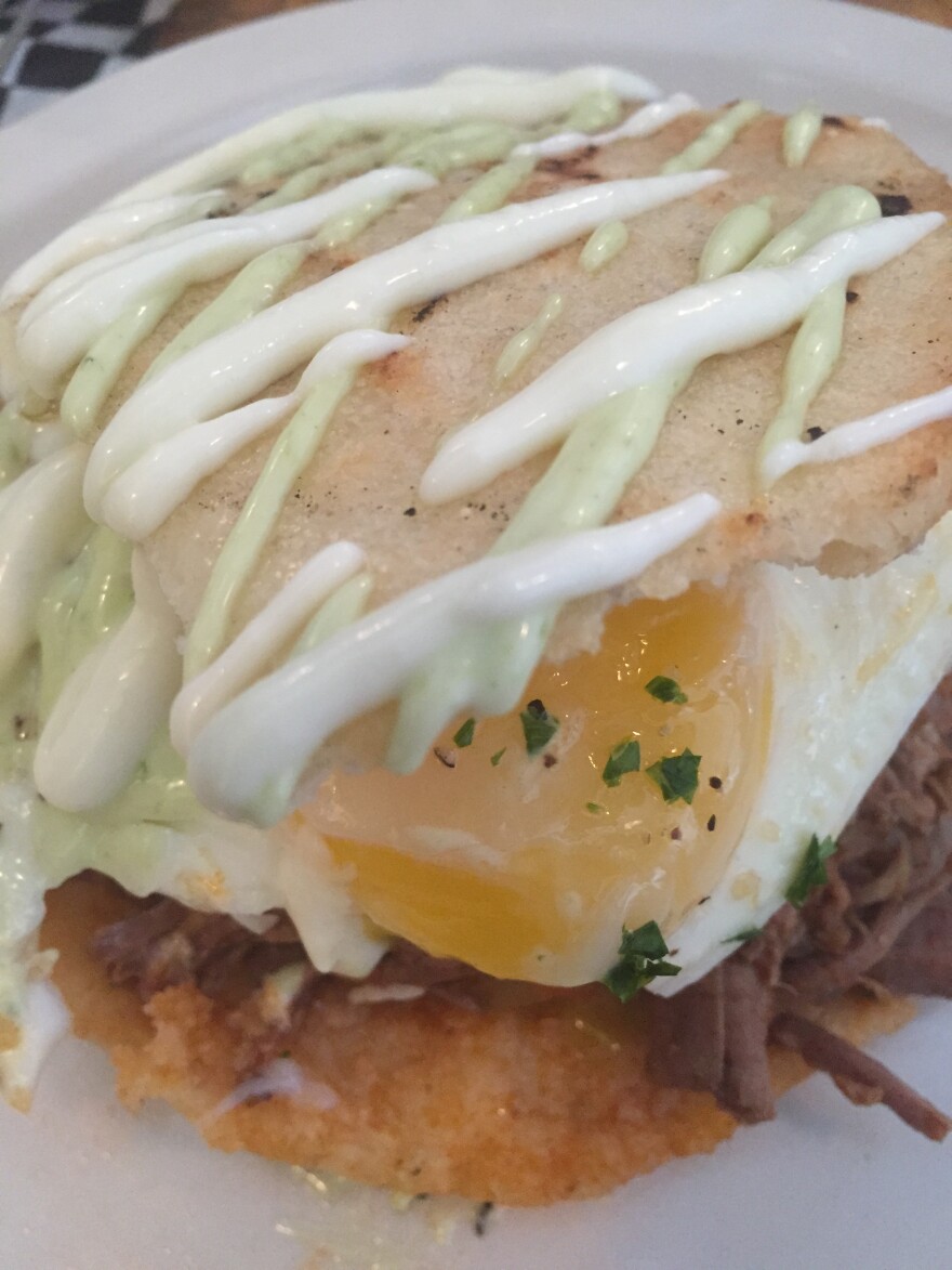 Wipe out the pan and add just enough butter to coat the bottom. Sauté the cheese slices, in batches, turning once, until golden brown on both sides. Lay each slice atop an arepa, and serve immediately.