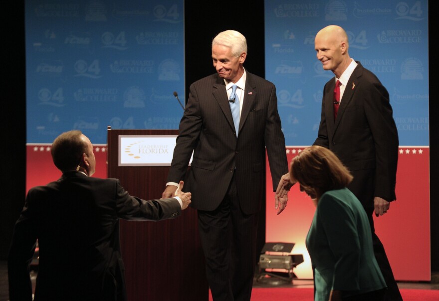 Governor Rick cott and former Governor Charlie Crist met for their second debate this week, but only after a delay over one candidate cooling down hot air.