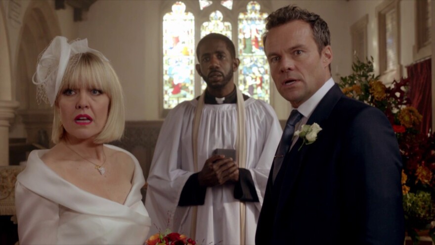 THE MURDEROUS MARRIAGE - Agatha's wedding to James is interrupted by her first husband Jimmy, a down and out Agatha had assumed to be dead and who agrees to a divorce - for a financial price. Next day he is found dead and Agatha, seen arguing with him by incomer Karen Hardy, is the prime suspect. Roy's sleuthing reveals that Jimmy was a blackmailer and an alcoholic who stayed at Hunter's House, a rehabilitation clinic not far from the village. Agatha and James unite to track down other residents who were there at the same time as Jimmy, as well as his elusive sponsor, to discover who had cause to silence him.